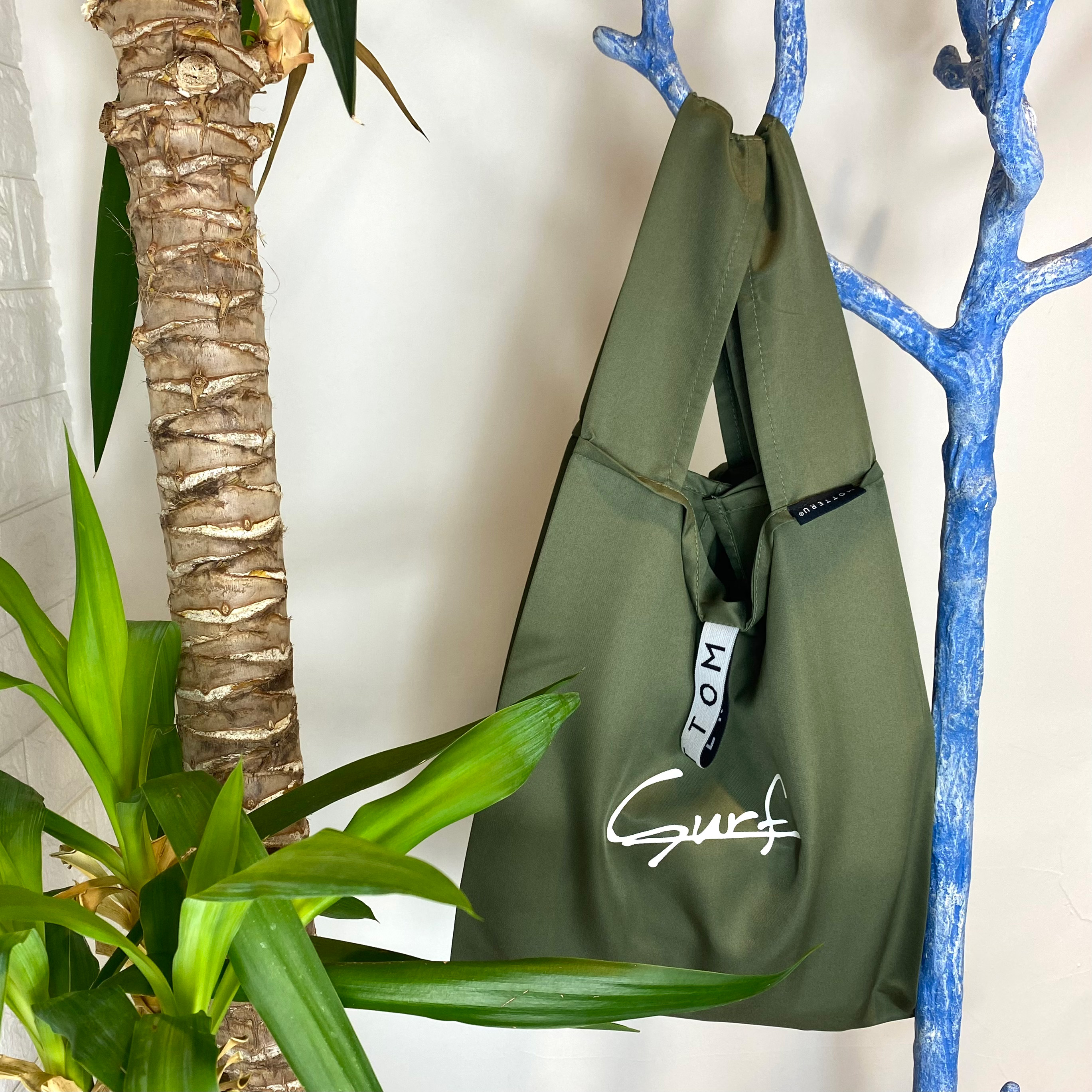 surfのロゴが入ったシンプルでオシャレなデザインで、性別、年齢問わず使いやすいエコバッグです。