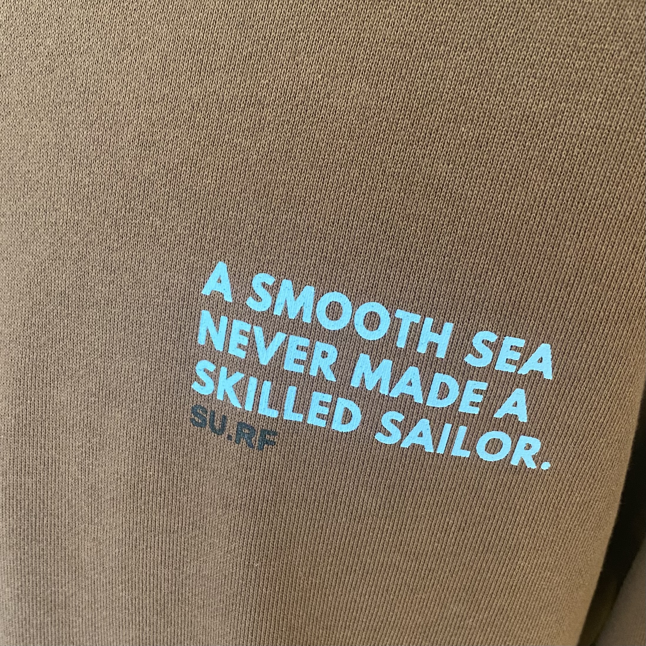 胸元の“A smooth sea never made a skilled sailor.”は、穏やかな海は熟練の船乗りを育てない、